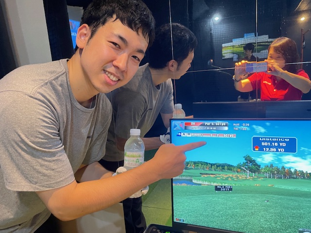 6月~ 「定額コースデビューレッスン」でゴルフをスタートされたKT様。 12回の基礎カリキュラムも今日が10回目。9番アイアンの小さなスウィングからスタートし、ドライバー、ユーティリティー、ウッド、アイアンのフルショットまでクリア。9月27日にコースレッスンで、コースデビュー予定のKT様。今日はシミュレーションゴルフで、初めての疑似ラウンド@石岡ゴルフコース